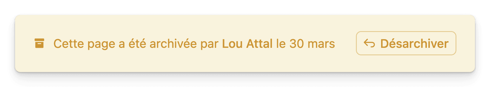 Dès qu’une page est archivée, un message indique qui l’a archivée et à quelle date, et vous pouvez la désarchiver à tout moment. Mais surtout, son comportement dépend de son emplacement.