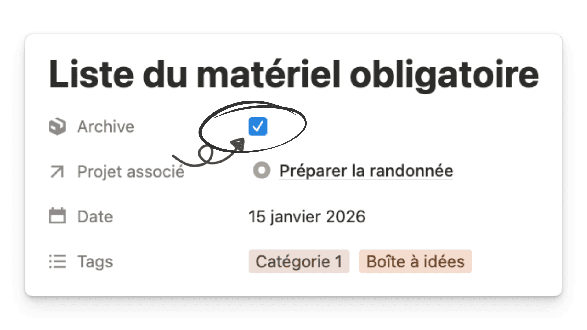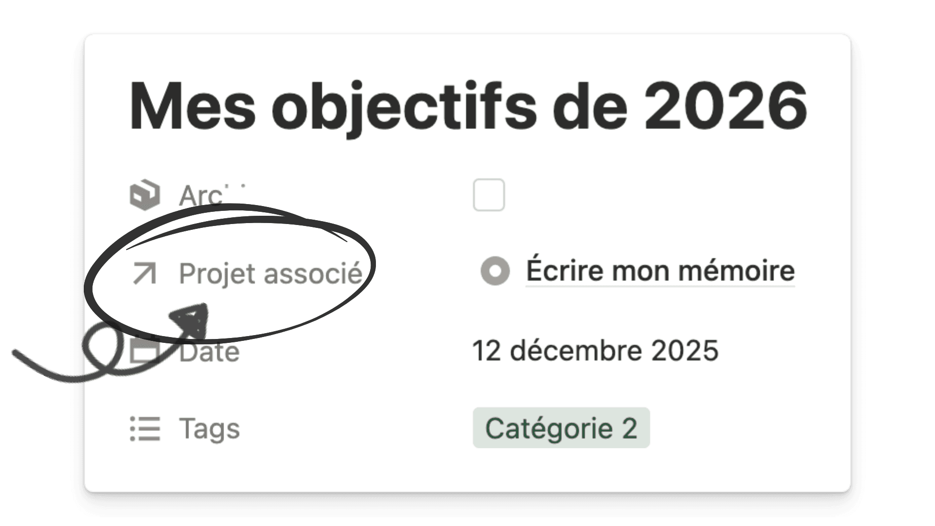 Ajoutez une propriété “archive”(case à cocher), puis créez une vue “notes actives” et une autre “archive” afin de garder uniquement l’essentiel sous vos yeux.