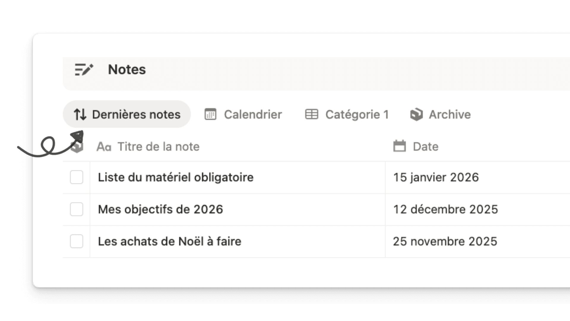 👉 Vous pouvez utiliser une vue table pour visualiser facilement toutes vos notes.